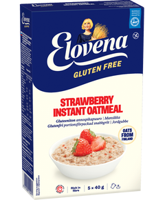 Склад: безглютенові цільнозернові вівсяні пластівці (84%), полунична заготовка 9% (полуниця, цукор, глюкозний сироп, кукурудзяний крохмаль, загущувач (E401)), цукор, сіль. Може містити невелику кількість яєць, молока, сої.