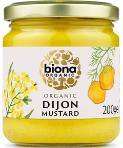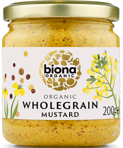 Склад: оцет*, вода, насіння гірчиці * (жовті) (20%),   насіння гірчиці * (коричневі) (8,7%), морська сіль, сироп агави*, куркума*, насіння коріандру*, фенхель*. *=Сертифіковані органічні інгредієнти. Органічна цільнозернова гірчиця Biona — це міцна та ситна гірчиця,...