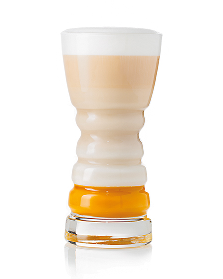 Налийте мангове пюре PONTHIER на дно склянки. Налийте еспресо в глечик. Довести молоко до 65°C. Налийте збите молоко в стакан і обережно вмішайте еспресо.