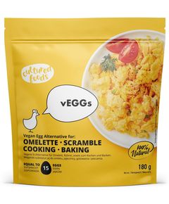 Склад: горохове борошно, гороховий білковий концентрат, нут, рослинне волокно, дріжджовий екстракт, гімалайська чорна сіль, натуральні загусники: гуарова гумка, ксантанова камедь, натуральний барвник: рослинні каротини, натуральний аромат. vEGGs „ Омлет ” - це рослинна, 100% натуральна...