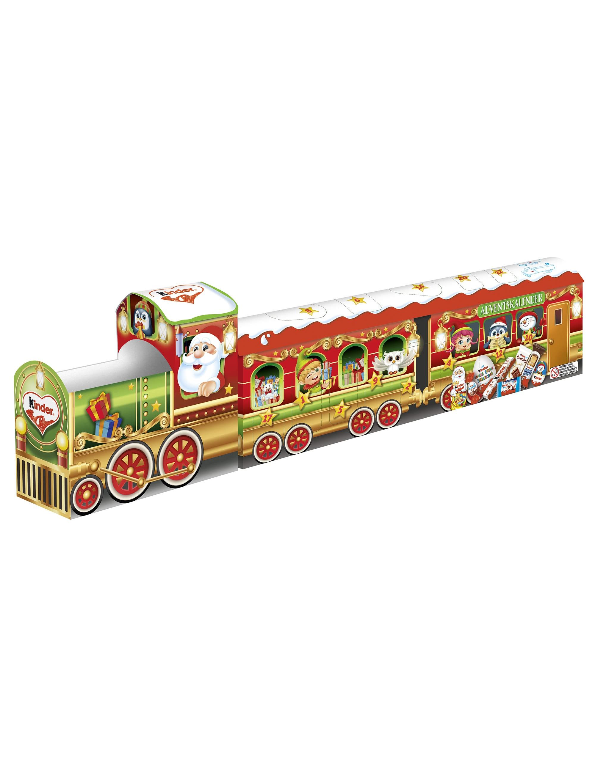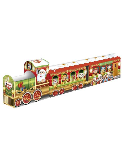 На повну швидкість у різдвяний сезон із чудовим дитячим міксом Адвент-календар 3D-поїзд! Оригінальний різдвяний експрес був продумано розроблений і привертає увагу не тільки в дитячій кімнаті. За 24 дверима навколо поїзда чекають смачні сюрпризи з популярного дитячого шоколаду.