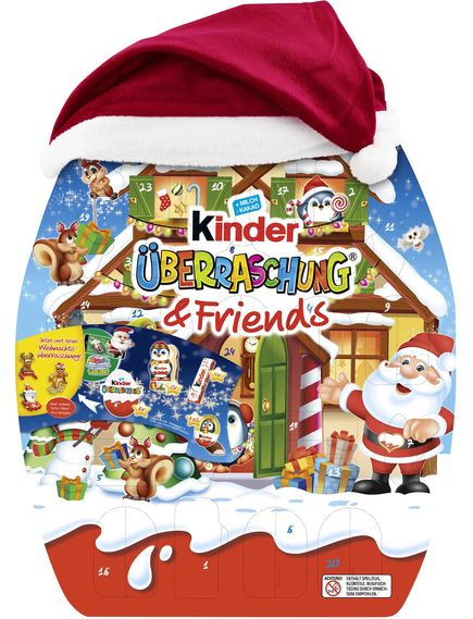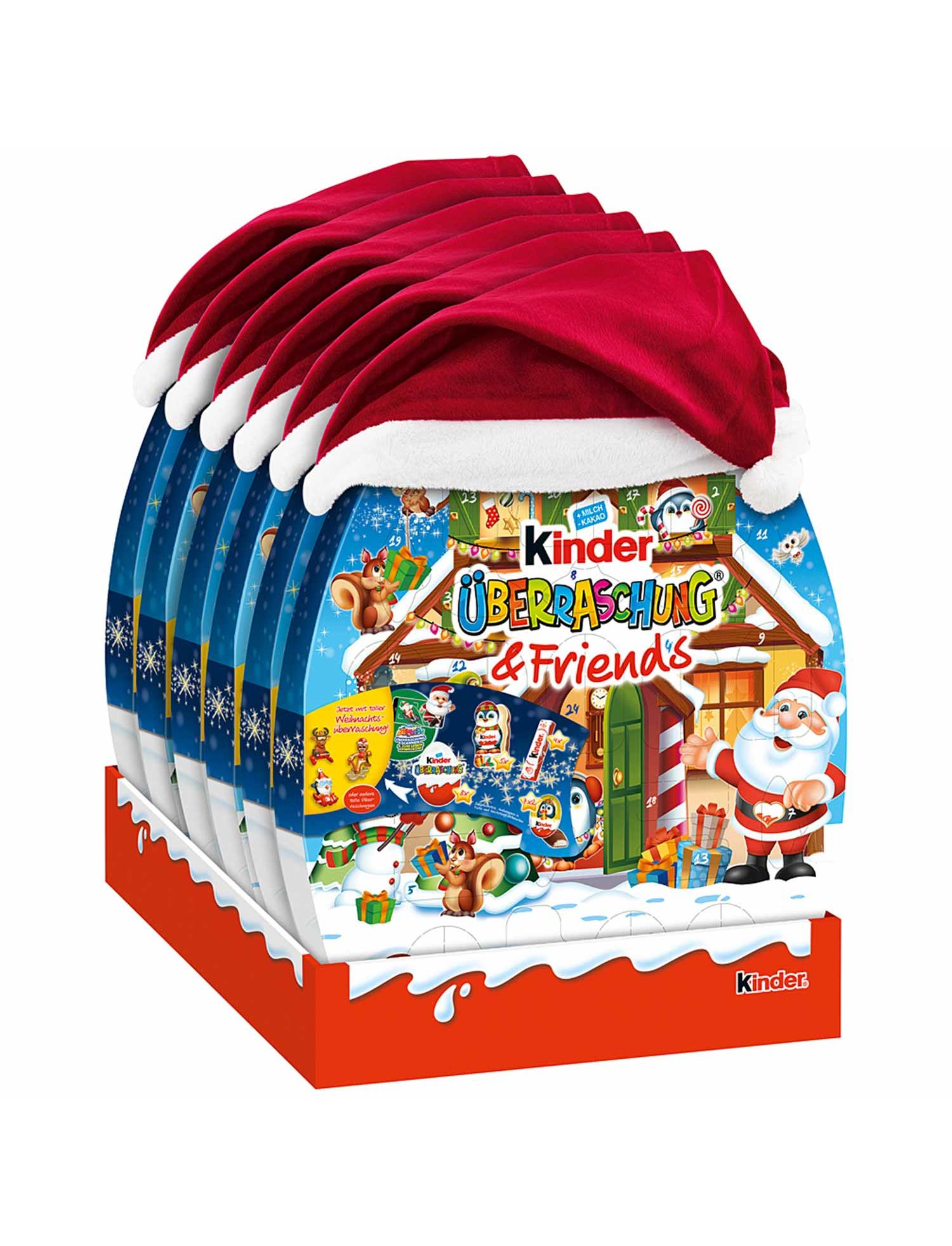 Адвент-календар Kinder Surprise & Friends — це найкращий адвент-сюрприз. Календар вражає різноманітністю виробів. 8 фігурок із яєць-сюрпризів, усі вони представляють різдвяну тематику та ними можна святково прикрасити ялинку. Для колекціонерів і поціновувачів смачного шоколаду з молочними вершками цей календар з пухнастим капелюхом Санти просто необхідний.