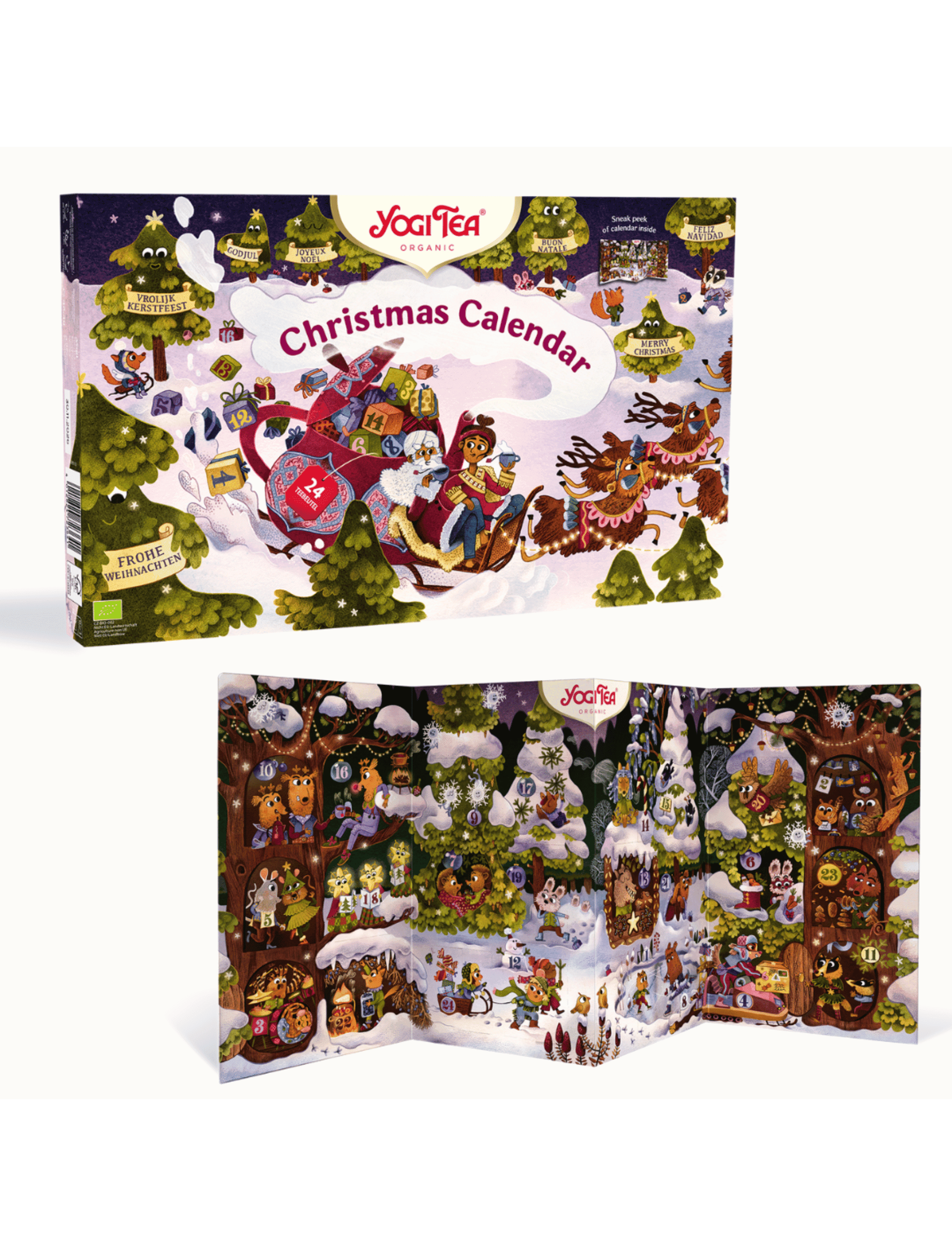 Святковий адвент-календар із 24 пакетиками органічного чаю, кожен з яких містить унікальну суміш