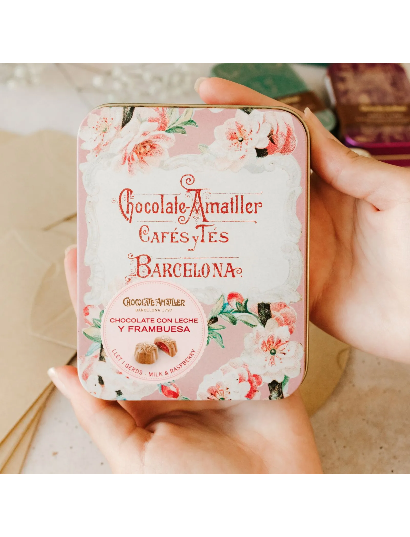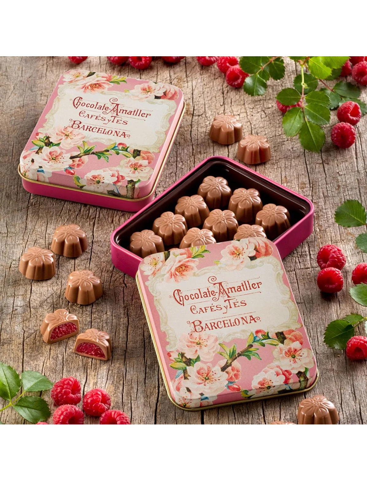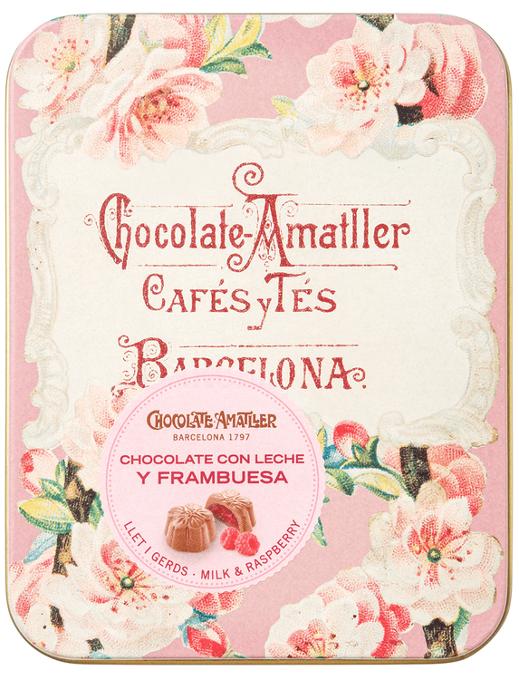 Ідеальні шоколадні цукерки для тих, хто любить поєднання шоколаду та фруктів. Шоколадні цукерки, покриті молочним шоколадом, з малиновою серединкою, яка доповнює вершковість молочного шоколаду легкою кислинкою. Вони упаковані в герметичний термопакет, що обмежує окислення та гарантує свіжість до моменту відкриття. Ідеально підходять для подарунка або для спільного використання. Вони представлені в металевих коробках, розроблених зі старих рекламних матеріалів бренду.