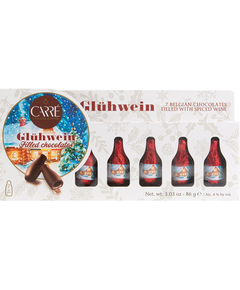 Склад: цукор, шоколад темний (какао терте, цукор, масло какао, емульгатор: соєвий лецитин), екстракт ванілі, вода питна, спиртний напій: концентрат Gluhwein (напій винний), спирт, вода питна, ароматизатор (сульфіти). Вміст алкоголю 3.7% Мінімальний вміст какао-продуктів 60%. На Різдво...