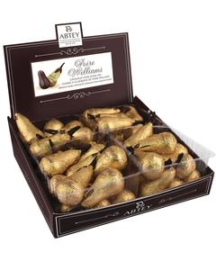 Склад: цукор, какао терте, інвертний цукор, какао-масло, спирт, грушовий бренді Вільямс 6%, ароматизатор, емульгатор: соєвий лецитин, ванільний екстракт. Какао: мінімум 51% в шоколаді. Містить сою. Може містити сліди лісових горіхів і молока. Класика - смачні груші Вільямс у чорному...