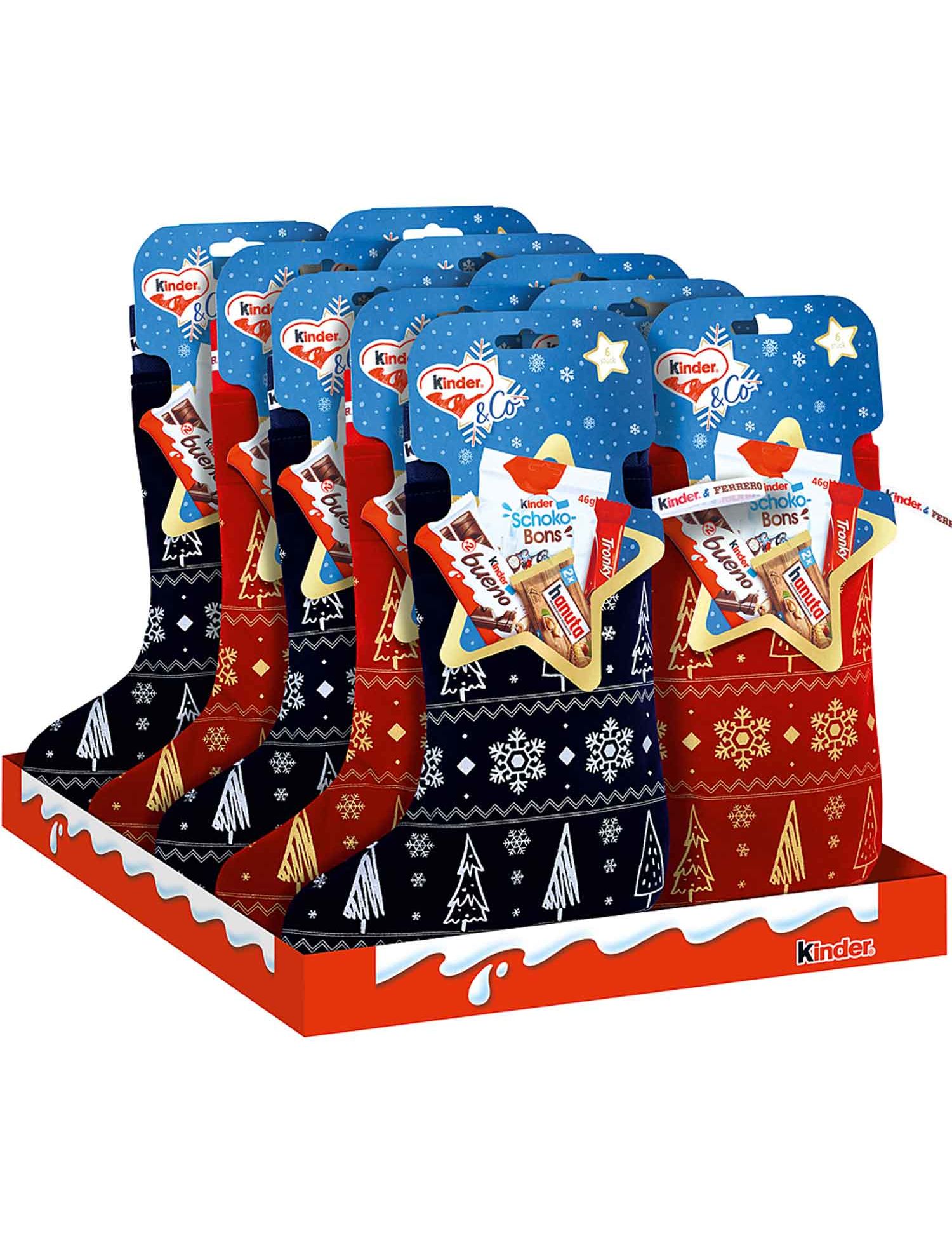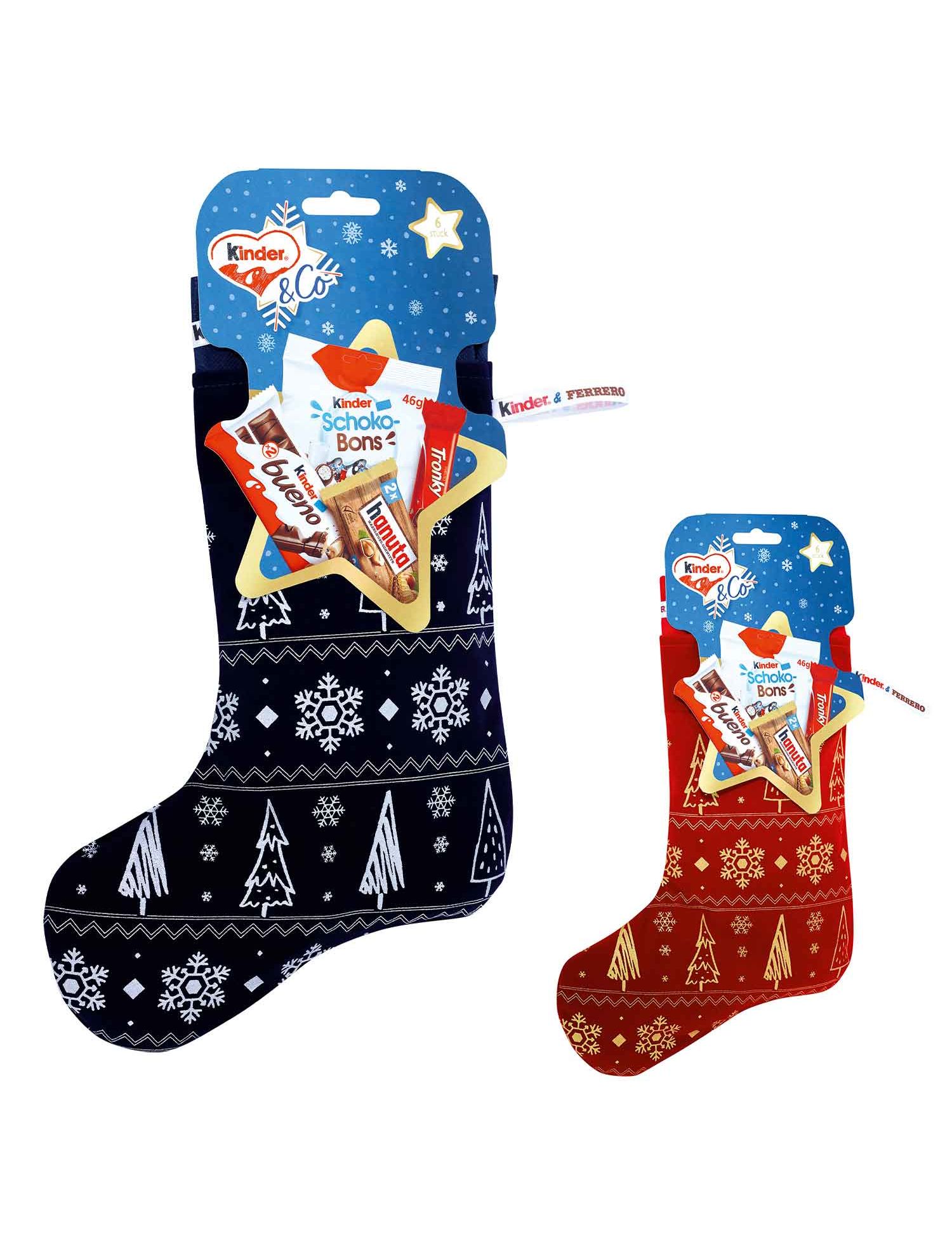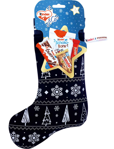 Різдвяний носок повний сюрпризів! Кумедна шкарпетка Kinder & Co. — бажаний подарунок не тільки на День Святого Миколая. Високоякісна тканинна шкарпетка створена до Різдва і вщерть наповнена різними смаколиками від Ferrero. З Kinder Bueno, Hanuta, Kinder Schoko-Bons і Tronky барвисте задоволення від перекусів гарантовано.