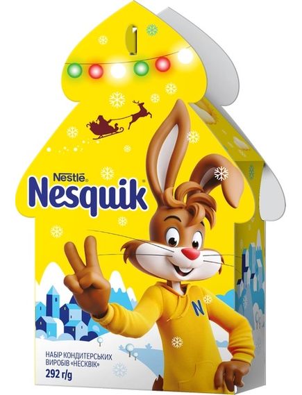 Подарунковий новорічний набір кондитерських виробів, що складається з цукерок, батончиків та плитки шоколаду від відомого бренду Nesquik. Привабливий дизайн упаковки неодмінно сподобається дітям, а набір із різноманітних солодощів всередині подарує заряд бадьорості та позитиву на цілий день. Подарунок відмінно підкреслить атмосферу Новорічного свята та підніме настрій дітям та дорослим.