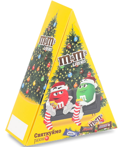 M&M's & Friends New Year Tree - набір драже та батончиків: Драже M&M's з арахісом 45 г – 1 шт. Батончик Milky Way Minis 15.5 г – 1 шт. Батончик Snickers Minis 18 г — 1 шт. Батончик Mars Minis 18 г — 1 шт.
