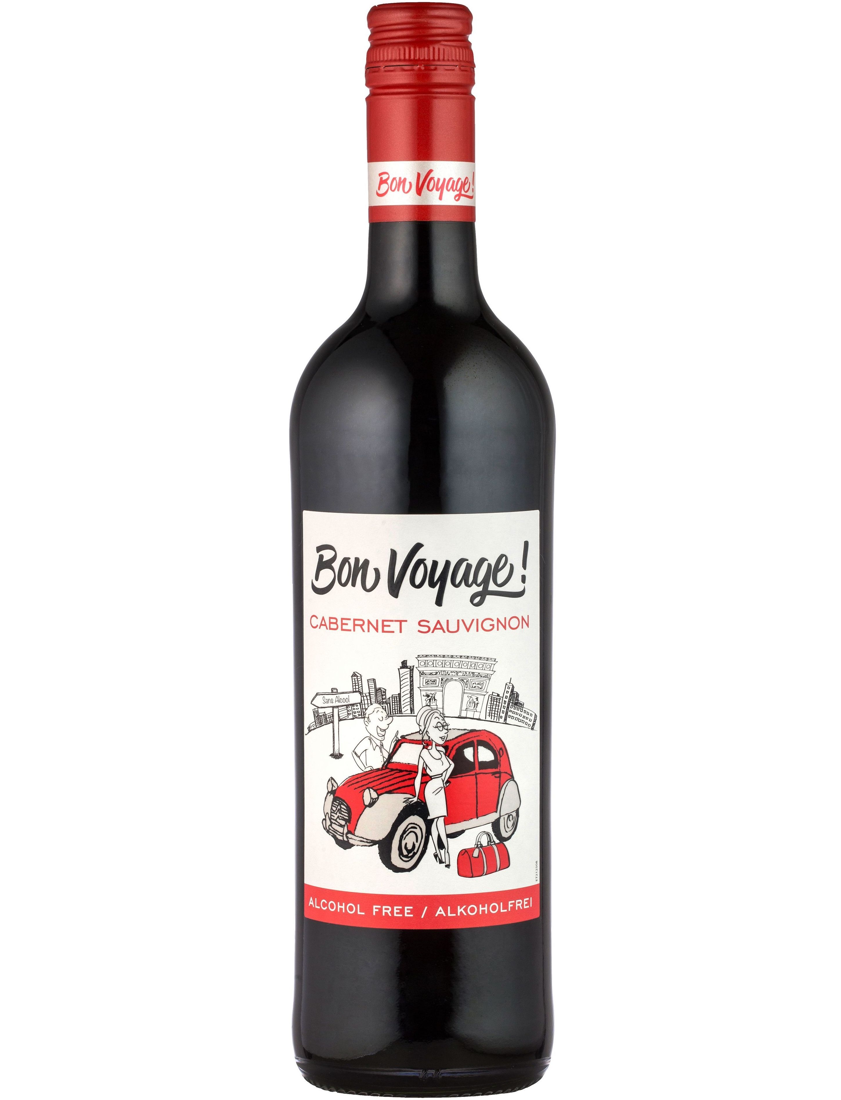 Напій Bon Voyage Cabernet Sauvignon безалкогольний на основі червоного вина 0,5% 750мл. Склад: безалкогольне червоне виноградне вино (з сорту винограда Каберне), концентрат виноградного сусла ректифікований, консерванти: сорбат калію, двоокис сірки.
