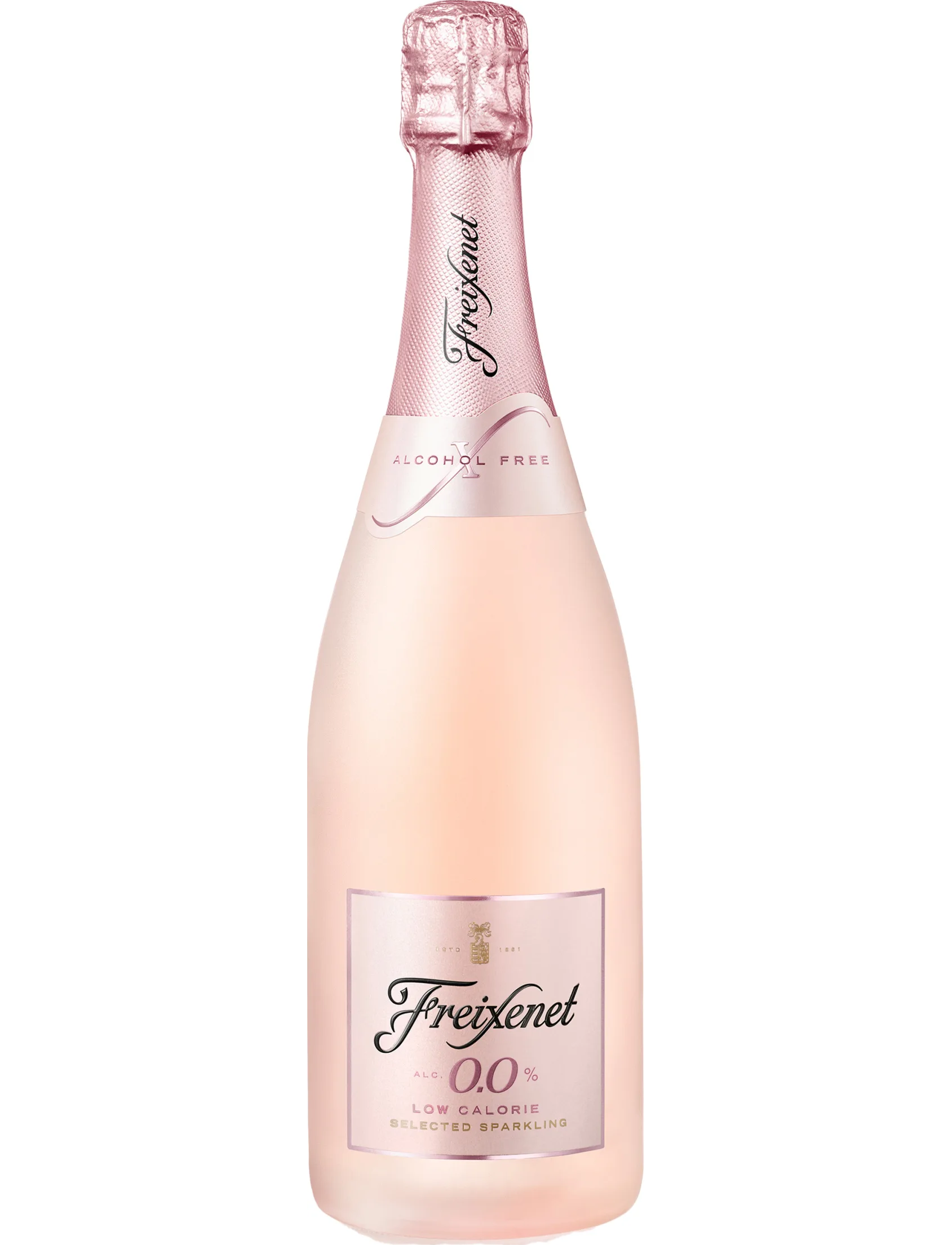 Напій ігристий Freixenet рожевий 0% 0.75л. Склад: вино безалкогольне (90.8%), виноградне сусло, двоокис вуглецю, антиоксидант двоокис сірки, консерванти: сорбат калію, диметилдикарбонат, барвник антоціан, ароматизатор. Тони букету: переважають дикі ягоди, а також квіткові ноти та тропічні фрукти, смак особливо фруктовий, свіжий і приємний. Гастрономічні поєднання: закуски, салати, десерти.