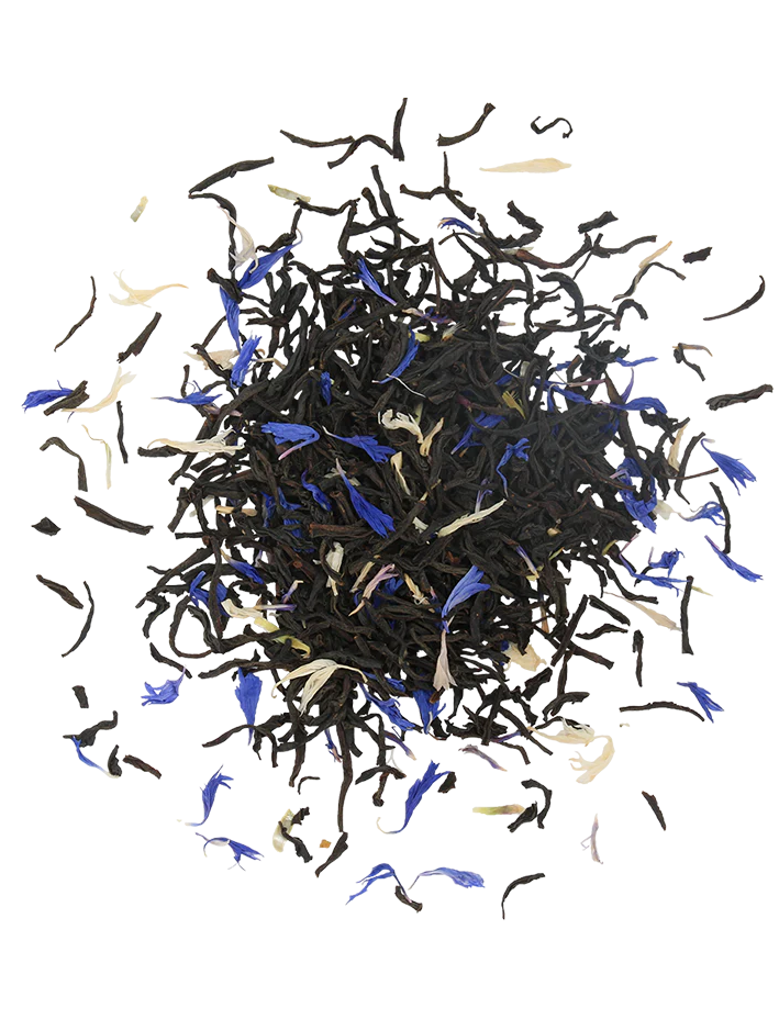 Цейлонський чорний чай з додаванням білої та блакитної волошки та ароматом персика та вершків.