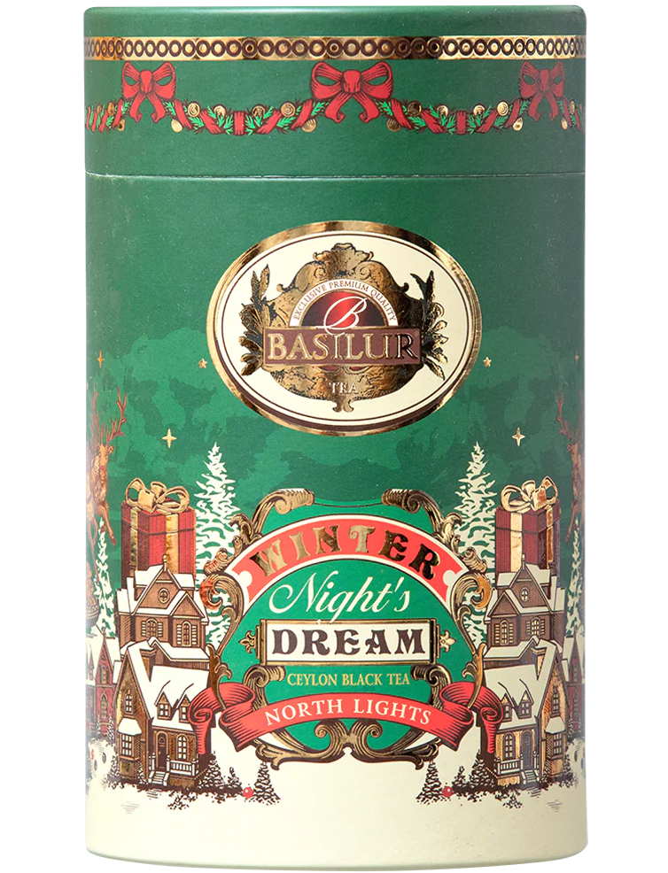Дозвольте собі зачаруватися чаєм з колекції «Мрія зимової ночі»! «Північне сяйво» порадує вас не лише унікальним букетом смаків, але й гарно оформленою упаковкою з мотивами зимового містечка.