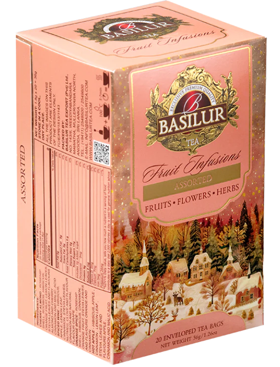 Набір фруктових чаїв без кофеїну з колекції Fruit Infusions у святковому варіанті. Упаковка містить 4 смаки: