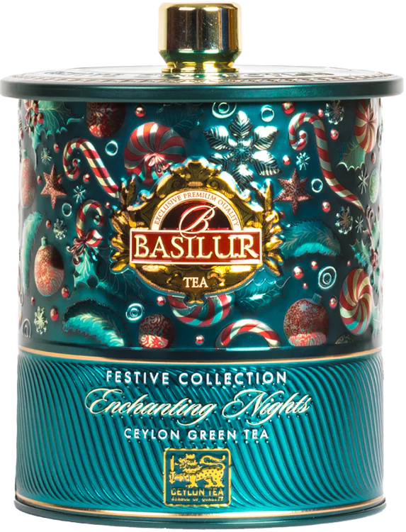 «Чарівні ночі» Basilur порадують вас автентичним смаком яблучного пирога . Ноти яблука та вершків переплітаються із солодким смаком папаї та свіжим ароматом зеленого чаю .