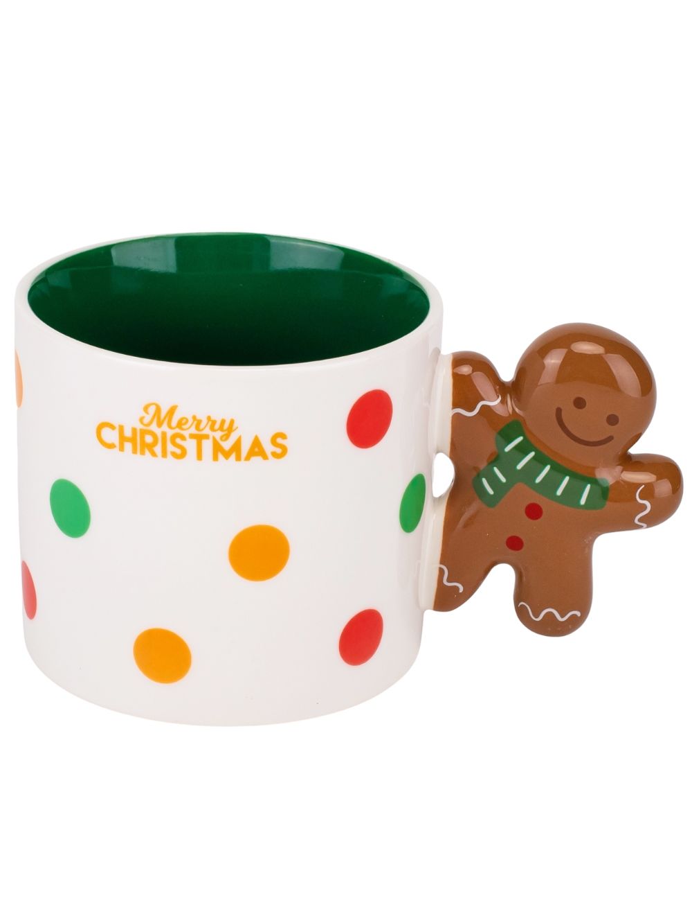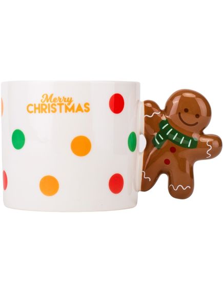 Чашка різдвяна керамічна Merry Christmas Пряниковий Чоловічок 390 мл Біло-Зелена