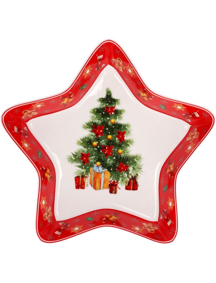 Блюдо порцелянове новорічне Зірка Червона 28 см