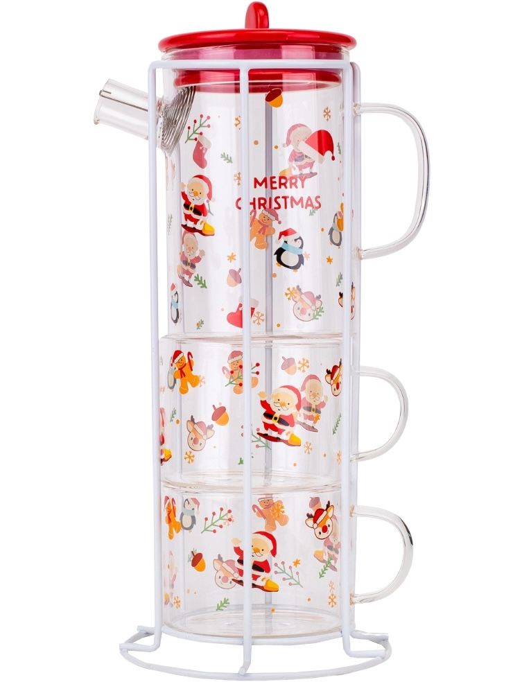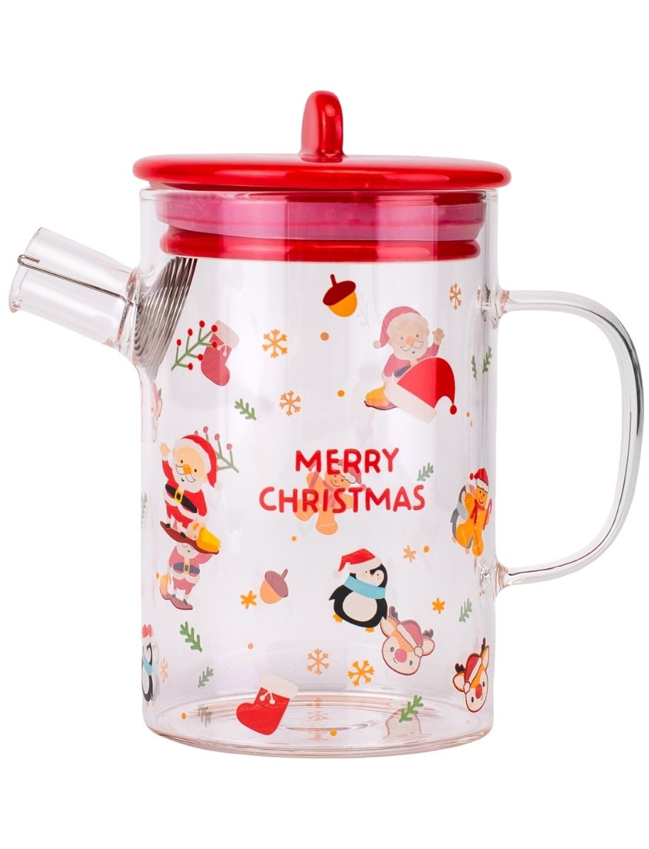 Різдвяний чайний набір Merry Christmas Чайник 450 мл + 2 Чашки по 250 мл Червоний