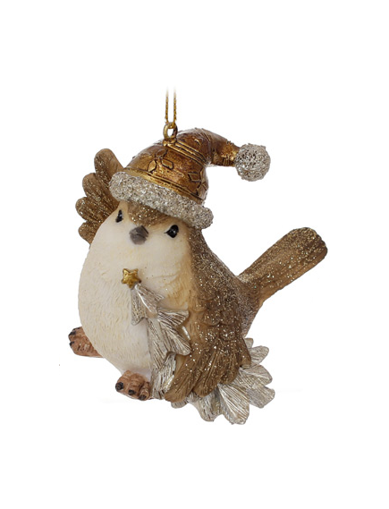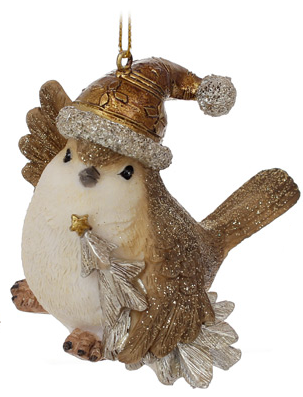 Ялинкова іграшка Пташеня в шапочці з ялинкою 11,5 см