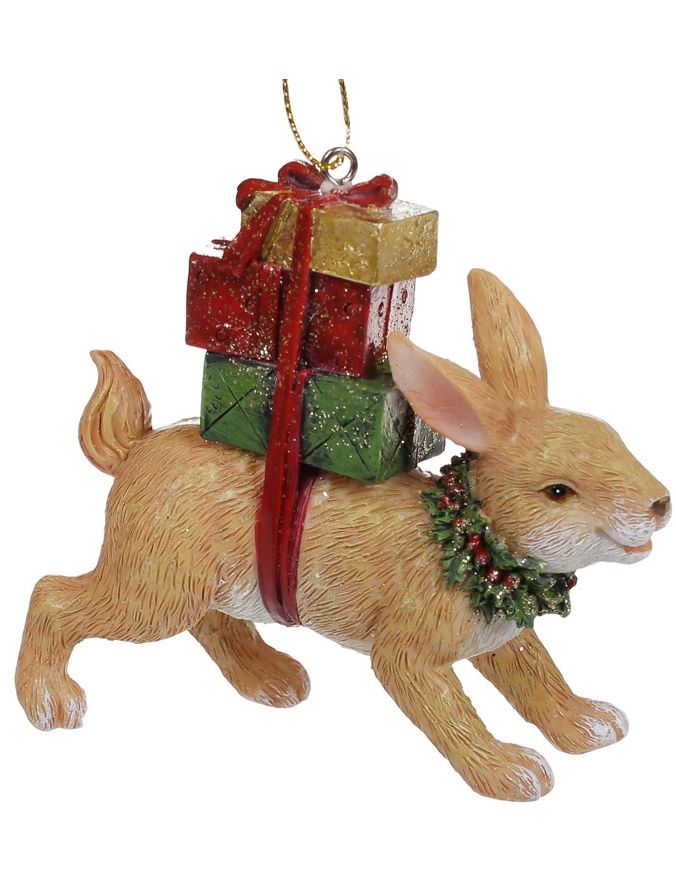Ялинкова іграшка Заєць з подарунками 9,5 см