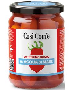 Склад: червоний томатний сік «Datterini» (83%), червоні помідори «Datterini» (12%), оливкова олія першого віджиму, цибуля, сіль, петрушка, часниковий порошок, гострий чилі (0,16%). Гострий червоний томатний соус Così Com'è Datterino З інтерпретації великої класики римської кухні з винятковим...