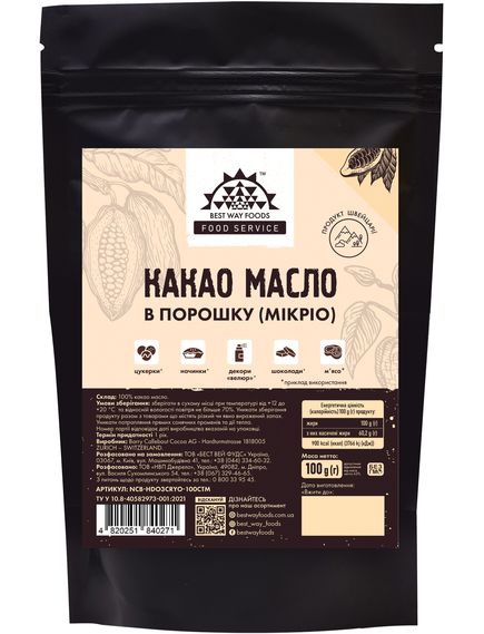 Какао масло Best Way Foods Мікріо підходить для начинок, цукерок, шоколаду, м’яса, декору «велюр».