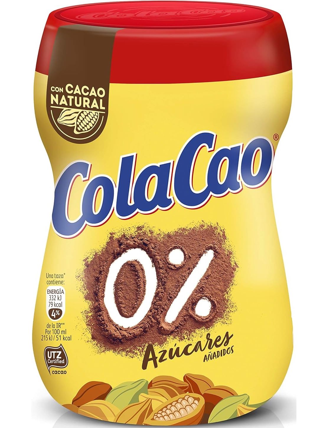 - ColaCao Zero, No Added Sugars містить 42% натурального какао, яке не було піддано жодній хімічній обробці та зберігає поживні властивості какао.