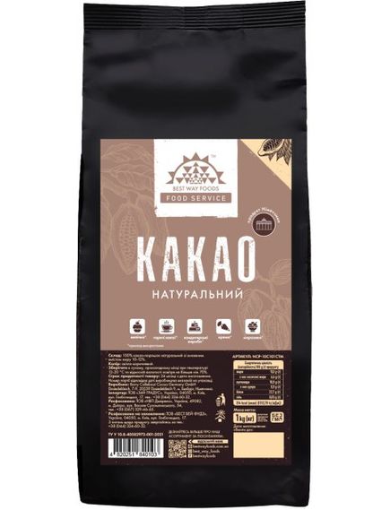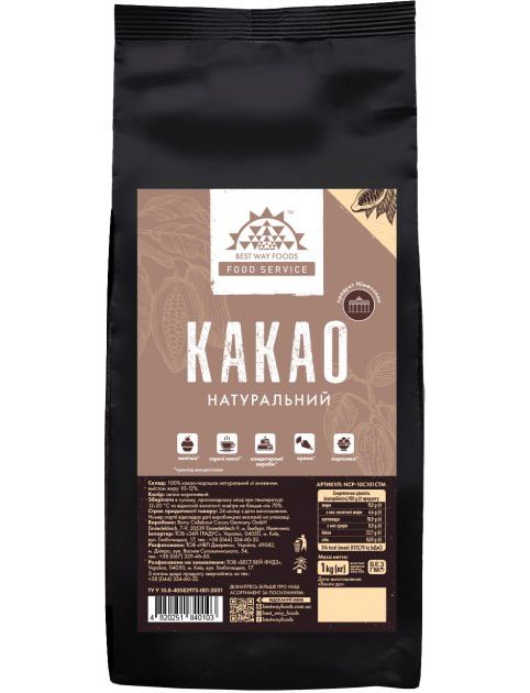 Склад: 100% какао-порошок натуральний зі зниженим вмістом жиру 10-12%. Без ГМО.