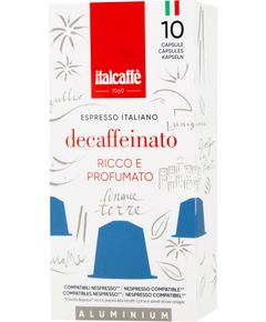 Алюмінієві капсули Italcaffè без кофеїну мають надзвичайний аромат і крем, тіло та смак найкращої кави еспресо. Це суміш кави без кофеїну, смаженої та меленої кави в однодозовій капсулі. Капсули сумісні з побутовими кавовими машинами Nespresso®. Бренд Nespresso® не є власністю Italcaffè...