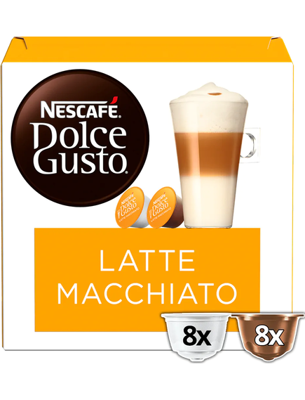 Кава в капсулах NESCAFE Dolce Gusto Latte Macchiato — вишукана, спокуслива, неперевершена кава, яка поєднує відтінки смаків від оксамитового ароматного еспресо до спіненого цільного молока та легкої високої пінки.