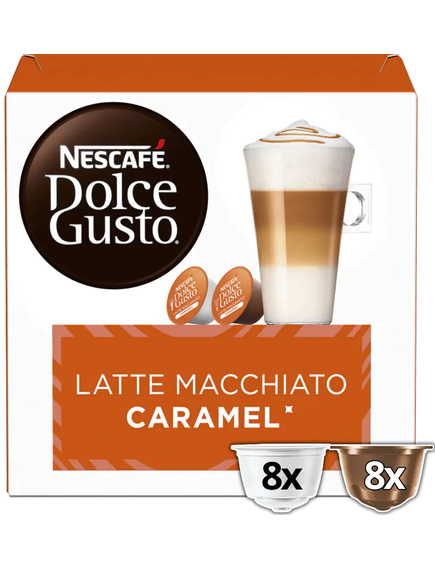 Кава мелена Nescafe Dolce Gusto Latte Macchiato Caramel — вишукана, спокуслива, неперевершена кава, яка поєднує відтінки смаків від оксамитового ароматного еспресо до спіненого цільного молока та легкої високої пінки з ніжним смаком солодкої карамелі.