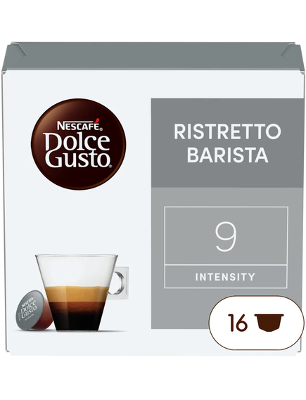 Кава в капсулах NESCAFE Dolce Gusto Ristretto Barista — міцна, ароматна кава із золотистою пінкою crema. Поєднує в собі ідеальні пропорції вишуканого купажу арабіки та робусти.