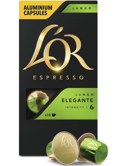 Відкрийте для себе витончений характер L’OR Lungo Elegante, в якому фруктово-квітковий смак розквітає нотами цитрусу й ожини, а світло-золотиста пінка елегантно огортає виточений аромат.