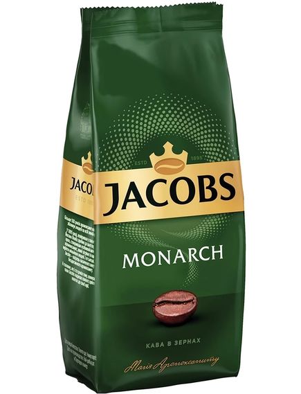 Зернова кава Jacobs Monarch уособлює у собі стандарти класики: збалансоване поєднання сортів зерен, помірне обсмажування — створюють смак класичної інтенсивності та неймовірний насичений аромоксамит.
