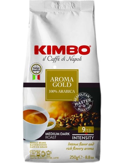 Ретельно відібрані зерна високоякісної арабіки з плантацій Центральної й Південної Америки, які на середньому ступені обсмажили найкращі фахівці з Неаполя, мають бентежний делікатний аромат і спокусливий смак із карамельно-шоколадним підтоном. Неймовірно ніжний, солодкуватий смак кави Kimbo Aroma Gold створено, щоб ним насолоджувалися якомога довше.