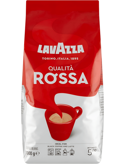 Натуральна кава в зернах Lavazza Qualita Rossa середнього обсмаження — символ початку дня в Італії й за її межами, що наповнює зарядом бадьорості на весь день — справжня кавова класика!
