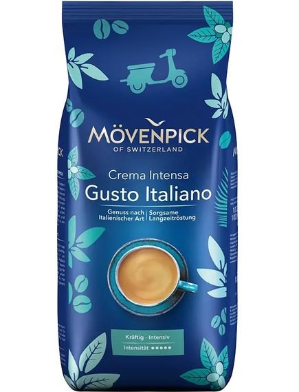 Mövenpick Caffè Crema Gusto Italiano доступний у вигляді цілих зерен і підходить для всіх повністю автоматичних кавомашин.