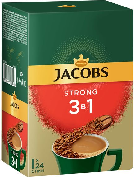 Насолоджуйтесь ще інтенсивнішим та насиченішим смаком кави разом із Jacobs Strong 3в1!