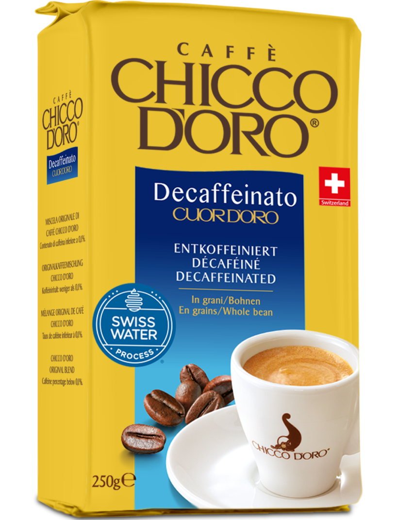 CHICCO D'ORO Decaffeinato Cuor d'Oro - це декофеїнізована мелена кава високої якості, яка за смаком практично не відрізняється від купажів з повним вмістом кофеїну. Делікатна середня обсмажування зерен надає напою насичений аромат та яскравий смак справжнього італійського еспресо. Помел універсальний, підходить для будь-яких способів приготування. Для отримання смачнішої та ароматної кави, рекомендуємо заварити в гейзерній кавоварці від Chicco d'Oro.
