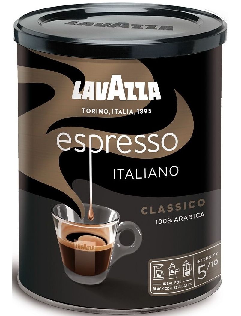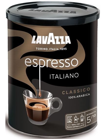 Натуральна мелена кава Lavazza Espresso середнього обсмаження середньо-тонкого помелу — найміцніша кавова суміш у лінійці Lavazza.