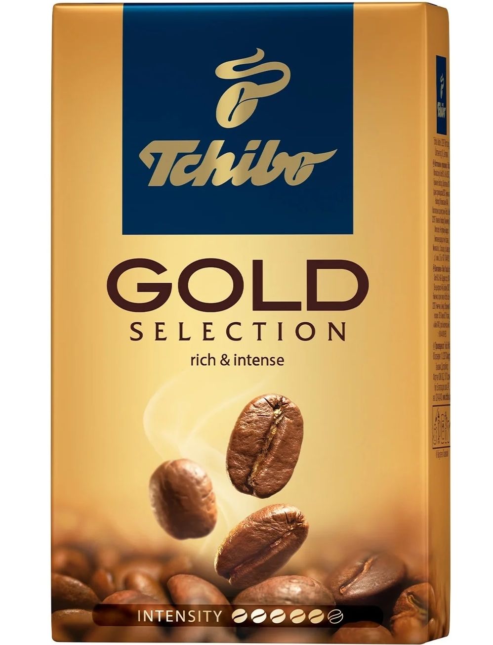 Tchibo, Германия / Gold Selection / натуральный молотый кофе / обладает насыщенным вкусом с легкими кремовыми нотками / идеально подходит для приготовления традиционного крепкого эспрессо и молочных напитков на его основе / купаж арабики и робусты / сильная обжарка кофейных зерен / сильная крепость / популярный европейский кофе с украинской локализацией / 250 г