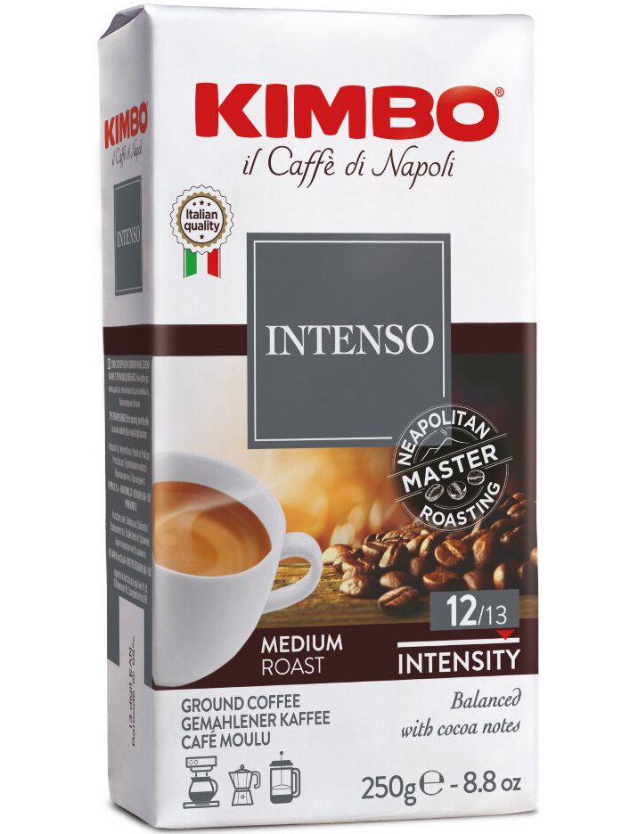 Чудовий баланс кавових сортів дарує приготованій каві Kimbo Aroma Intenso оксамитовий смак із шоколадними відтінками й неймовірно інтенсивний пробуджувальний аромат.