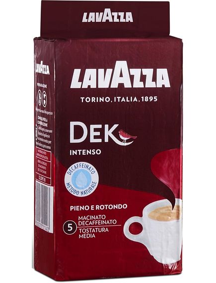 Lavazza Dek Decaffeinato Intenso - напій, здатний задовольнити побажання будь-якого цінителя кави. Кава, що складається на 0,1% з кофеїну ні в чому не поступається напоям містить кофеїн. Сучасні технології дозволяють знизити рівень кофеїну практично до нуля, але при цьому не змінюючи головних властивостей кави. Lavazza Dek Decaffeinato Intenso складається з 30% бразильської арабіки і 70% азіатської робусти. Це з'єднання надає каві ідеальний аромат і смак, має бісквітні відтінки.