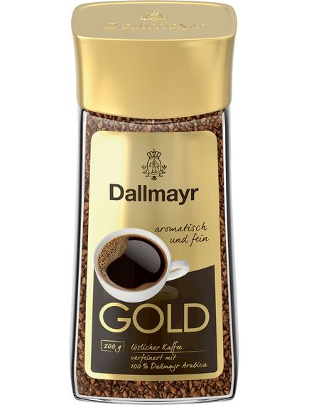 DALLMAYR GOLD – розчинна кава з елегантним складом. Повністю ароматний на смак - ідеально підходить для любителів кави, які цінують якість, а також швидке та легке приготування.