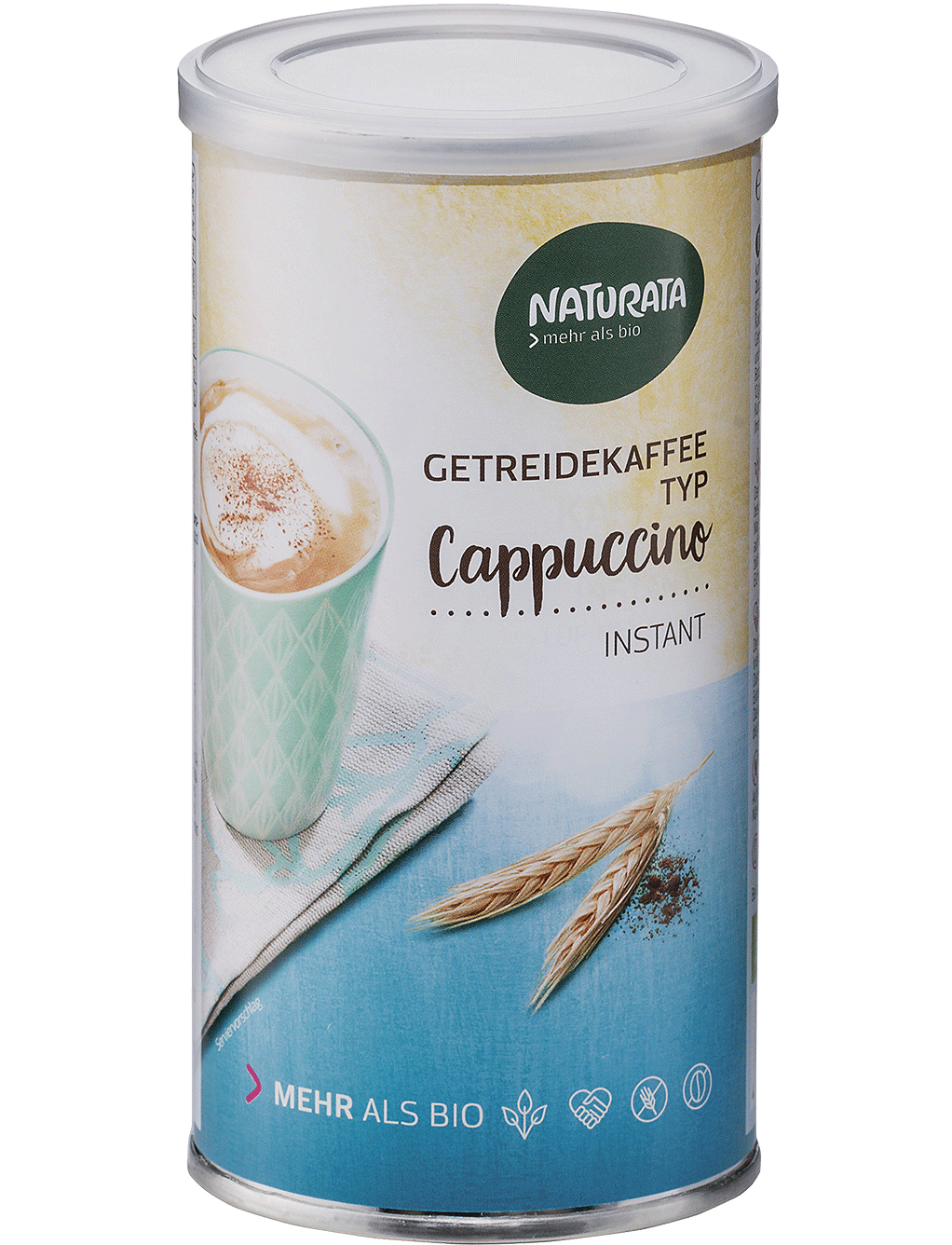 Naturata Cappuccino Instant, виготовлений із зернової кави, пропонує особливо м’яку кавову насолоду для всієї родини, оскільки він не містить кофеїну та підсолоджується лише кукурудзяним сиропом. Зерно вирощене за контрольованими біологічними стандартами в Німеччині. Зікорій, жолуді та інжир родом з Європи та Туреччини.