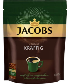 Jacobs Cronat Kraftig — це високоякісна розчинна кава, виготовлена за технологією сухого заморожування, що дає змогу максимально зберегти смак і аромат кавових зерен у кожній гранулі.
