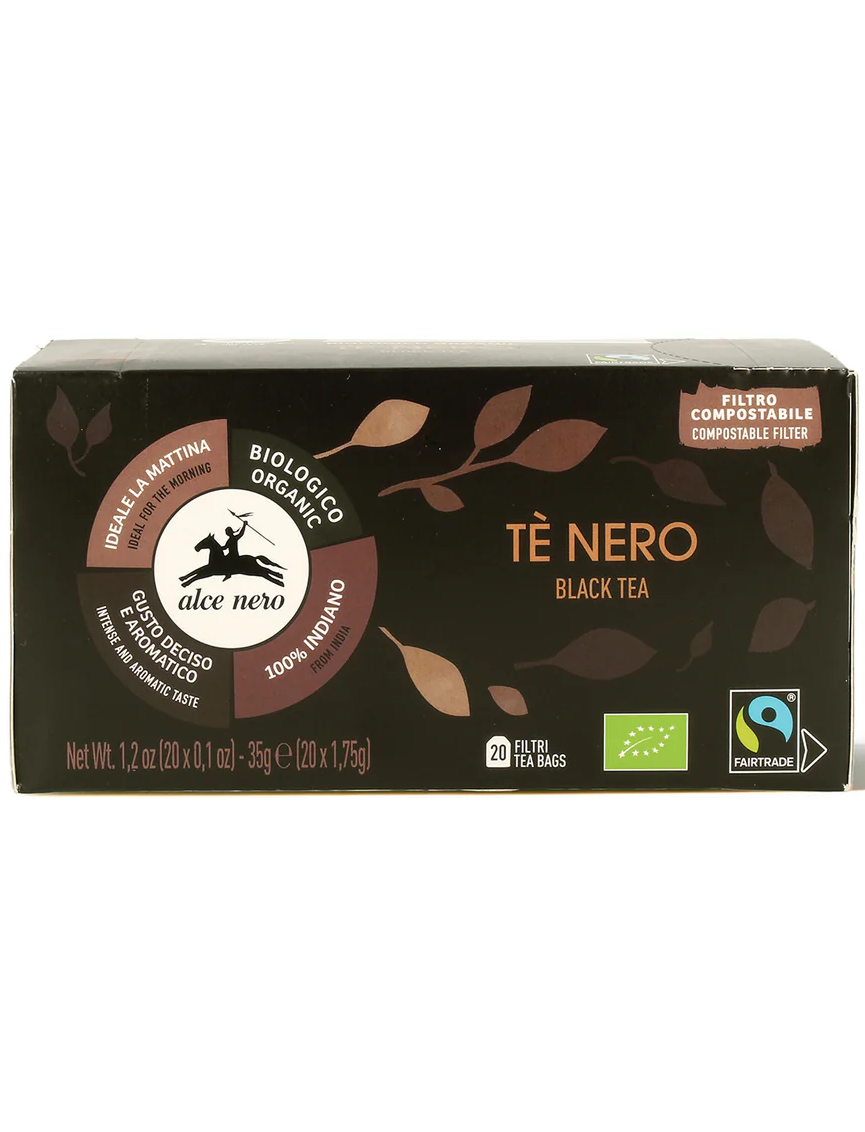 Органічний чорний чай Alce Nero — це суміш високовідібраних чорних чаїв, що характеризуються глибоким, інтенсивним і приємним ароматом. Чорний чай (походження від Camellia Sinensis) є найпоширенішим і відомим на Заході. Органічний чорний чай Alce Nero - це вишукана колекція чорного чаю з півдня Індії, яка зберігає весь аромат і типовий смак плантації.