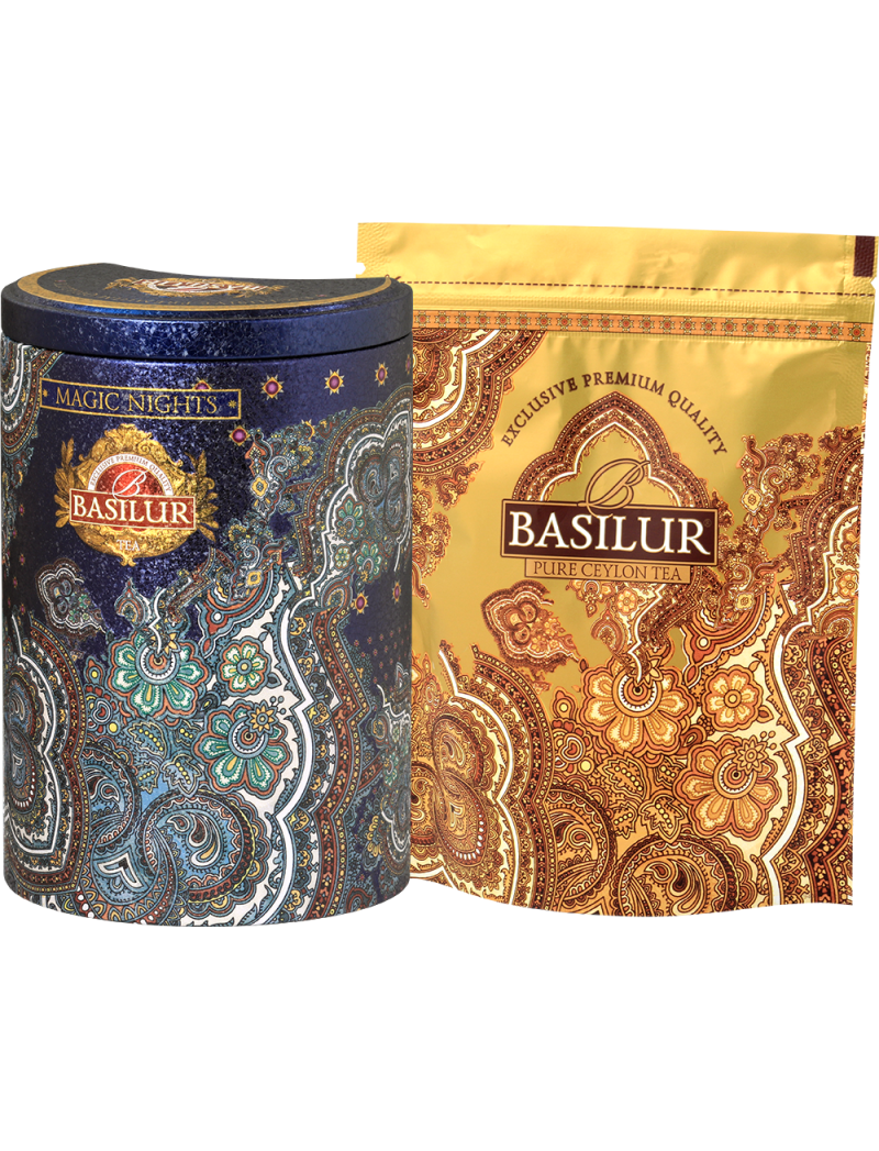 Фруктова композиція порадує вас своїм смаком і заспокоїть ваші почуття. «Чарівні ночі» вже багато років займає лідируючі позиції серед усіх чаїв торгової марки Basilur Tea і є найбільш часто вибираною сумішшю любителів хорошого чаю преміум-класу. Рекомендуємо всім!