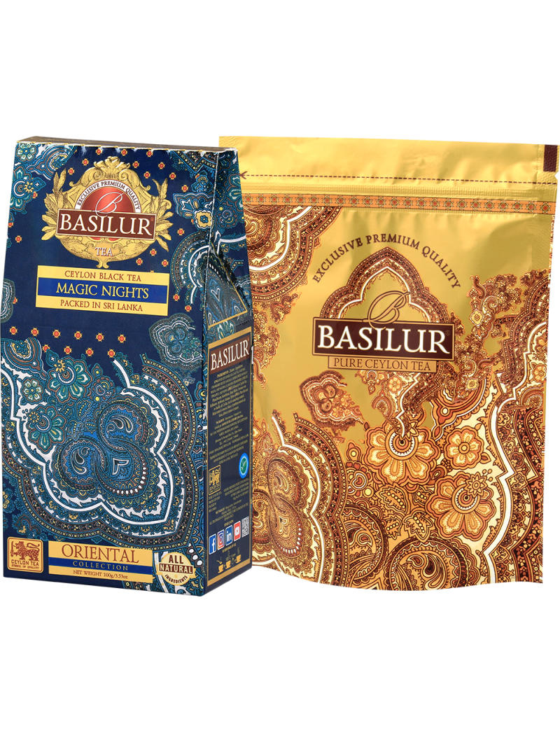 Фруктова композиція порадує вас своїм смаком і заспокоїть ваші почуття. «Чарівні ночі» вже багато років займає лідируючі позиції серед усіх чаїв торгової марки Basilur Tea і є найбільш часто вибираною сумішшю любителів хорошого чаю преміум-класу. Рекомендуємо всім!