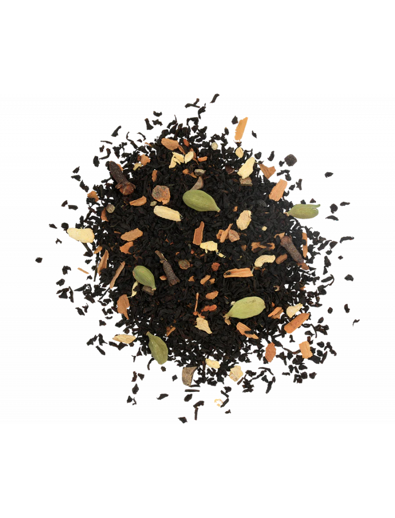 Цейлонський чорний листовий чай з додаванням натуральних спецій (кардамон, гвоздика, кориця, імбир, мускатний горіх, перець).